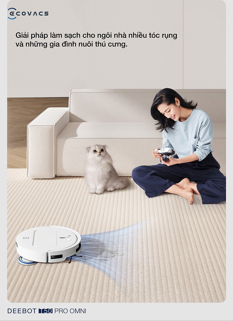 Trong xu hướng thiết kế nội thất hiện đại, đồ đạc thường được đặt sát sàn để tạo không gian thoáng đãng. Tuy nhiên, điều này cũng đồng nghĩa với việc việc vệ sinh những khu vực dưới gầm giường, gầm tủ… trở nên khó khăn. Hiểu được điều này, robot hút bụi lau nhà Ecovacs Deebot T50 Pro Omni ra đời, thiết kế siêu mỏng chỉ 81mm giúp len lỏi sâu hơn để làm sạch kỹ lưỡng từ gầm giường, tủ sofa đến những góc khuất nhỏ nhất đều được vệ sinh, đảm bảo không bỏ sót bất kỳ hạt bụi nào.