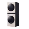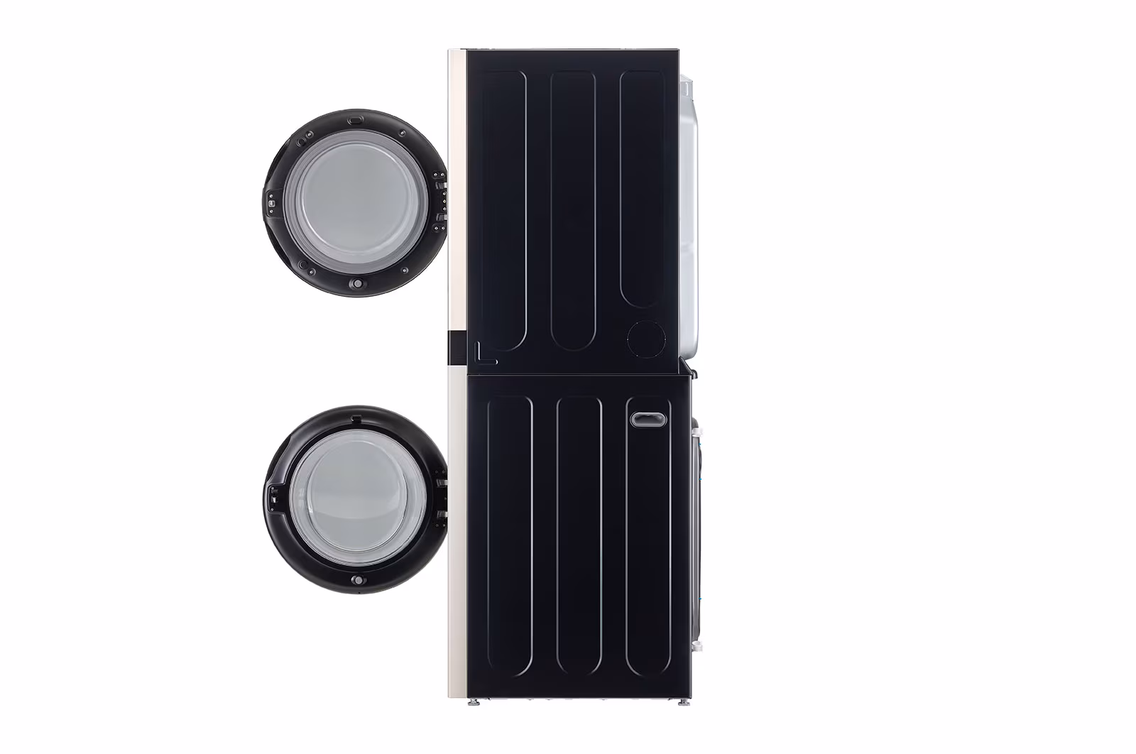 So với máy giặt và máy sấy xếp chồng lên nhau, máy này thấp hơn 45mm và bảng điều khiển trung tâm được đặt cao hơn 85mm.