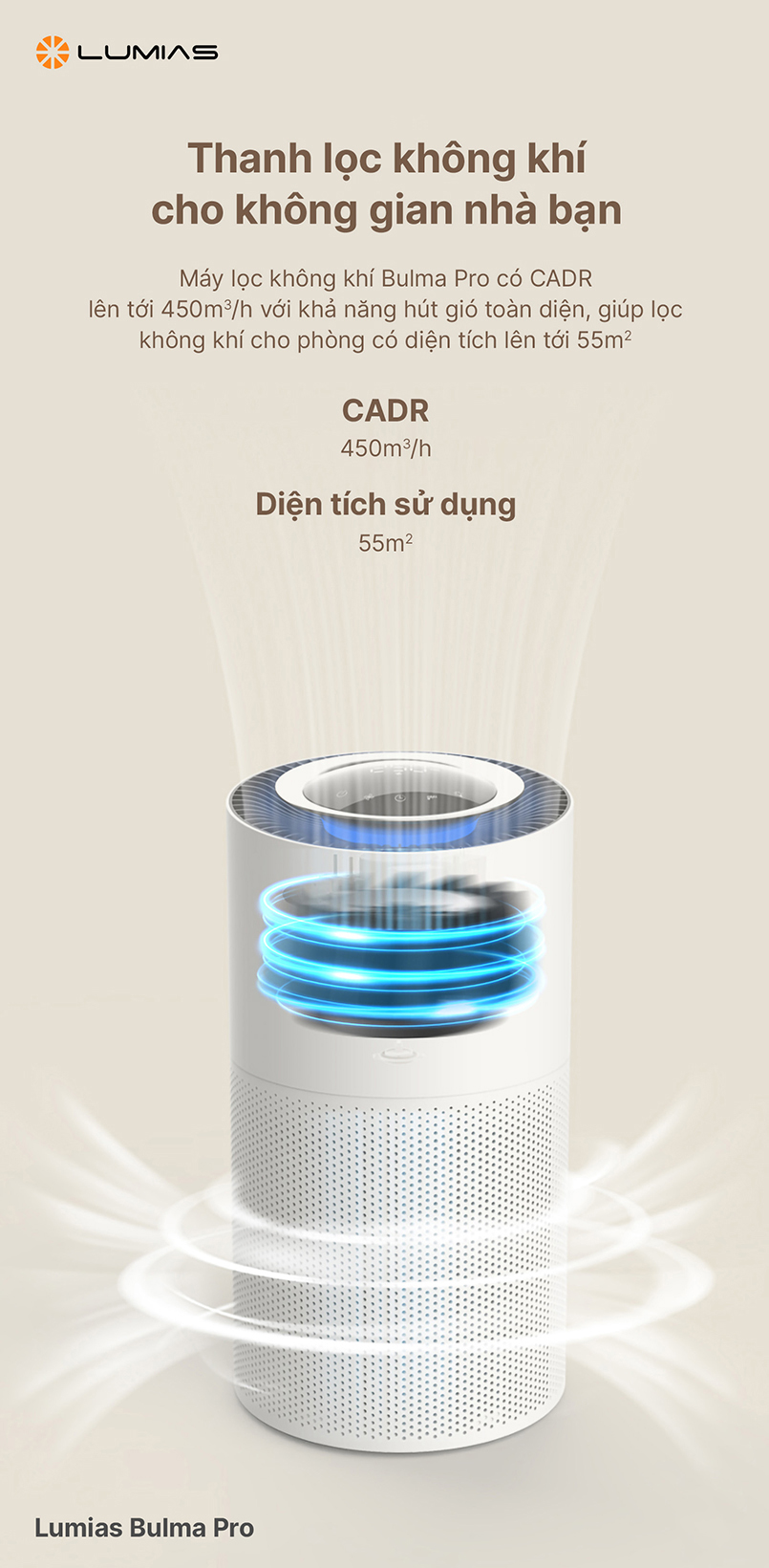 Máy lọc không khí Lumias Bulma Pro thiết kế cửa hút gió 360 độ